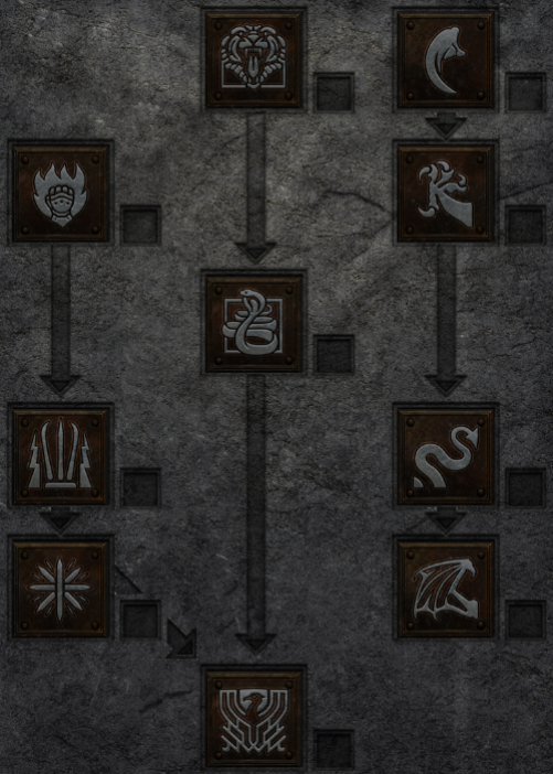 PS+DT 맥스 후: 맹독 → 20, 퇴색 → 10, 죽음의 보초 → 10, 그림자 마스터 → 5, 천둥 발톱 5